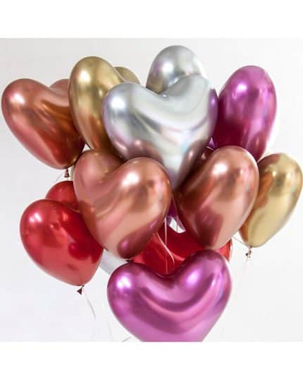 Шары из латекса с хромовым покрытием могут быть разных размеров и форм, что позволяет создавать разнообразные декорации. Они могут быть использованы как отдельный элемент декора, так и в сочетании с другими украшениями, например с цветами, тканями, лентами или другими шарами.